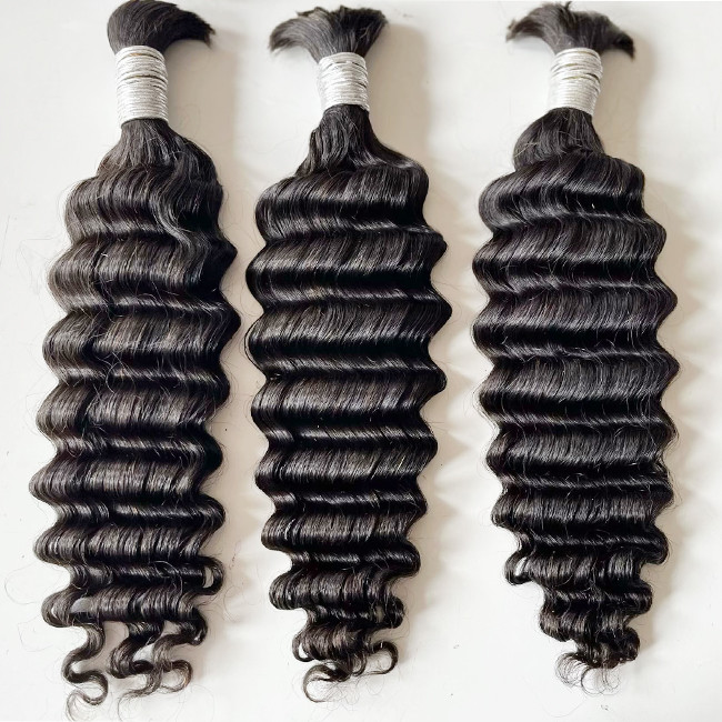 Cabelo humano de onda profunda duplo para trançar preto natural